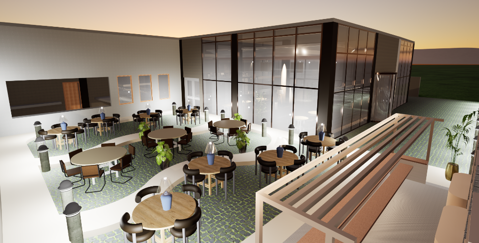 The "Reader's Cafe" in Connaught Place is envisioned as a contemporary urban haven, meticulously designed to offer a sophisticated yet comfortable environment for patrons to read, work, socialize, and enjoy refreshments. The interior concept blends modern aesthetics with elements that foster a relaxed and intellectually stimulating atmosphere, characteristic of a high-end cafe or lounge.