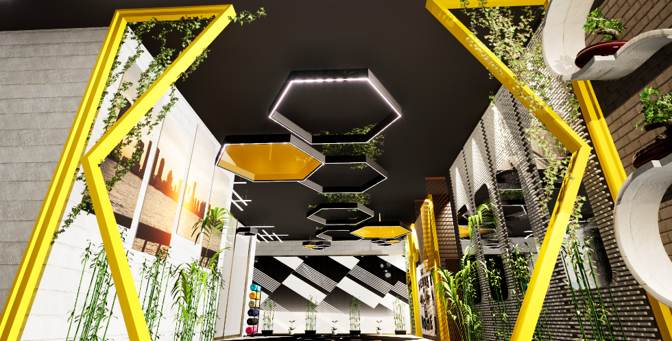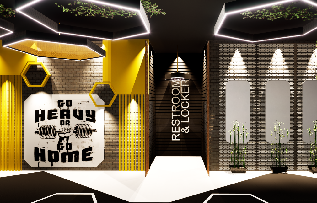 This interior design project for Gold's Gym in Delhi embodies a high-energy, contemporary approach, aiming to inspire and motivate users through its bold aesthetic and functional layout. The design successfully marries industrial elements with striking colors and strategic lighting to create a dynamic and engaging fitness environment.
